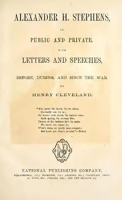 - Cleveland, Henry (1866). Alexander H. Stephens in Public and Private: With Letters and Speeches. National Publishing Company.
