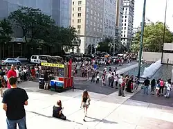 The show was also extremely popular with the public, leading the museum to take extraordinary measures to meet demand. Originally scheduled to run only until July 31 that year, it was extended through August 7. Patrons waited in lines of up to two hours to see the exhibit.[10] To accommodate the large crowds, the Met offered a special $50 ticket to view the exhibit on Mondays, when the museum was usually closed.[11][12] Over 17,000 of these tickets were sold.[13] The Met also allowed its members to skip the line; museum membership increased 15%, with 20,000 new memberships sold during the show.[13] During the final weekend of the exhibition, lines stretched to over four hours,[14] and the museum stayed open until midnight for the first time in its history.[10] By the time the exhibit closed, over 650,000 people had seen it,[15] making it one of the most popular exhibits in the museum's history, and its most popular fashion exhibit ever.[16]