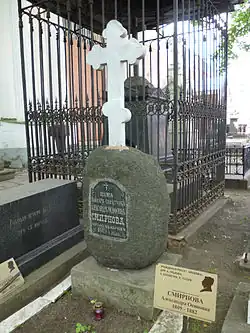 - ^ Smirnova-Rosset, A. O. (1999). Zapiski A.O. Smirnovoĭ, urozhdennoĭ Rosset s 1825 po 1845 gg. Kirill Kovalʹdzhi. Moskva: Moskovskiĭ rabochiĭ. ISBN 5-239-01936-3. OCLC 42458031.