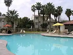 By the late 1990s, the resort was owned by Louis Habash.[18] In 1998, Alexis Park made an offer to purchase the adjacent 208-unit Americana Inn apartment complex, located west of the resort, with plans to convert it into a hotel building that would connect to Alexis Park. The resort also planned to construct a three-story, 120-unit hotel building. In addition, there were plans to convert the hotel lobby into a 7,079 sq ft (657.7 m2) casino after the purchase of the Americana Inn.[19][20] These plans did not materialize.[12]