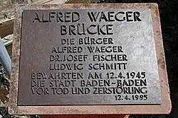 Wäger settled in Baden-Baden and in the last days of the war was able to hand over the city to the advancing French without a fight. A bridge over the Oos river was named after him in 1995.