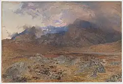 He did not, however, abandon his artistic practice for, encouraged by Ruskin, he exhibited at the Royal Academy in 1854, and afterwards contributed landscapes in oil and watercolour to London and other regional exhibitions. In 1861 he married, gave up his Fellowship, and in 1862 was elected as an Associate of the Royal Watercolour Society, receiving full membership in 1864. His work is distinguished mainly by its exquisite quality and a poetic rendering of atmosphere.[2] He was associated with the Pre-Raphaelite Brotherhood, and the extraordinary detail apparent in his landscapes and the careful rendering of grass, leaves and trees is a consequence of this.