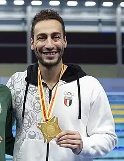 Ali Khalafalla (Arabic: على أحمد محمود على خلف الله; born 13 May 1996)[1] is an Egyptian Olympic swimmer.[2] He represented his country at the 2016 Summer Olympics and 2020 Summer Olympics. He placed 23rd in the 50 Freestyle, in Rio 2016. In Tokyo 2020, he placed 24th in the same event. A feat that has never been accomplished in Egypt's history.