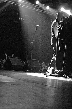 McMordie performing on stage.