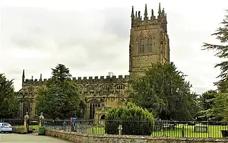 All Saints' Church (Welsh: Eglwys yr Holl Saint) stands in the former coal mining village of Gresford in Wrexham County Borough, Wales. It is a large, mainly late 15th-century church in a slightly red sandstone, in many ways more typical of nearby Cheshire churches.[1] It has been described as the finest parish church in Wales, and has the most surviving medieval stained glass of any Welsh church.[2]