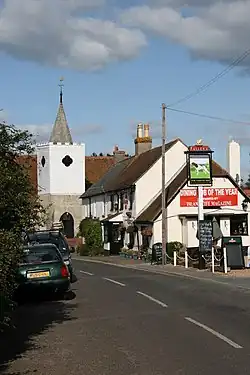 The church of All Saints' is a 13th-century cruciform structure with a south porch. The exterior features a red-tiled roof, walls of rough sandstone, a weatherboarded tower, a south porch, and a short spire. The nave's roof and the exterior of the north aisle appear barn-like.[2]