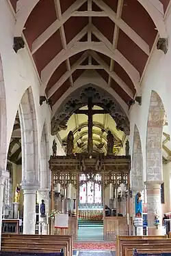 The earliest part of the church is the nave dating from the 12th century. The arcades date from the 13th century and the east end was rebuilt in the 14th century, when the chancel chapels were added.