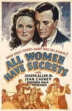 All Women Have Secrets is a 1939 American comedy film directed by Kurt Neumann and written by Agnes Christine Johnston. The film stars Virginia Dale, Joseph Allen, Jeanne Cagney, Peter Lind Hayes, Betty Moran and John Arledge. Also appearing briefly in one of her first screen roles is Veronica Lake, billed as Constance Keane.