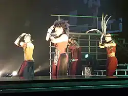 For the 2015–2016 Unbreakable World Tour, the track was again part of the setlist.[106] According to Jason P. Woodbury from The Arizona Republic, "lusty jams" like "All for You" showcased the singer's "bawdy side" during the concert.[107] In April 2016, Jackson announced that due to family planning, all remaining dates of the tour would be postponed.[108] In 2017, the concert tour was resumed in the form of the State of the World Tour, and "All for You" was included on the setlist in a medley with "Escapade" and "When I Think of You".[109] Jackson performed the track as part of a medley of her hits during the 2018 MTV Europe Music Awards ceremony, on November 4, 2018.[110] In 2019, Jackson executed "All for You" on her Janet Jackson: Metamorphosis residency concert in Las Vegas, with a choreography reminiscent of the song's music video as noted by People's Mark Gray,[111] and was also sung by the singer on the Janet Jackson: A Special 30th Anniversary Celebration of Rhythm Nation tour as part of the encore.[112] The track was included on the 2023–2024 Janet Jackson: Together Again tour; Matthew Allen of TheGrio noted that "reverberation from the audience's screams and stomping materialized into the air" when Jackson performed the song's video break.[113] Jackson performed the song at the American Music Awards of 2025 as part of a medley before accepting the Icon Award at the ceremony.