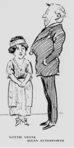 Aynesworth began the 1900s playing Lieutenant B. F. Pinkerton in Madame Butterfly, David Belasco's play, which was five years away from becoming much better known in Giacomo Puccini's operatic version.[1] In 1903 he made one of his few appearances in a costume drama, playing Sir John Melville in the 18th-century comedy The Clandestine Marriage.[12] From 1903 to 1907 he established a fruitful stage partnership with Marie Tempest in a series of long-running plays, mostly at the Comedy Theatre, but with one excursion to New York to play The Freedom of Suzanne at the Empire Theatre.[1][13]