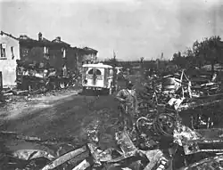 On 15 September, French civilian workers at the Gare de Marseille-Canet who were smoking in a train carrying ammunition for the ground forces, 500-pound (230 kg) bombs for the air forces, and chemical warfare material, set off an explosion that killed ten French civilians and ten American servicemen, and started a fire. Tanks were used to remove other trains from the area. Quick thinking by Lieutenant Colonel George F. Glass, the Coastal Base Section ammunition officer, prevented the fire from reaching a nearby area where 105 mm ammunition was loaded. The fire was eventually brought under control by the 1208th Engineer Composite Fire Fighting Platoon.[105]
