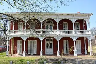 It is a two-story brick structure, with a hip roof topped by a flat section once surrounded by either iron or wooden railings. The main facade has a two-story porch, supported by six simple wooden posts, with an ornate entablature and paired brackets in the cornice above the posts. The main roofline also has paired brackets. The house was probably built in the 1850s, and is noted for its transitional Italianate-Queen Anne styling. It is also notable as the home from 1868 until his death in 1881 of Henderson Robinson, an African-American who served in a variety of county offices during the Reconstruction Era after the American Civil War.[2]