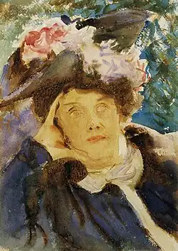 In 1897, she published a book of translations of Spanish and Italian folk songs.[1] It was illustrated by Edwin Austin Abbey and John Singer Sargent.[1][5] Sargent, a close friend, painted Strettell's portrait twice, once around 1889 and again in 1905, and also included her in several group studies. She is among a group of figures in his 1889 painting A Game of Bowls, Ightham Mote, Kent.[6][1]