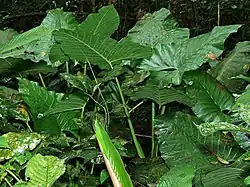 Alocasia sarawakensis is a species of flowering plant in the elephant ear genus Alocasia (family Araceae), native to Borneo.[1] Unusually for an aroid, it is a freshwater swamp forest obligate, preferring well-lit situations.[2] A large species, it can reach 8 ft (2.4 m).[3] A cultivar, 'Yucatan Princess', is commercially available.[4]