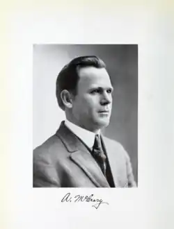 Alonzo McCrory was born on September 10, 1878, in Fayette County, Texas, to A. S. McCrory and Clara Wier. His father was a Confederate soldier from Tennessee and his mother was from Mississippi. He attended public schools and Baylor University, but did not graduate. In 1903 he moved to Durant, Oklahoma, and started manufacturing soda water. He worked in the mercantile business from 1904 to 1909 in Comanche and Cornish. In 1909, he founded the Cornish News in Cornish, Oklahoma. In May 1914 he moved his paper to Ringling, Oklahoma, and changed the name to Ringling News.[1] He was elected to the Oklahoma House of Representatives representing Jefferson County in 1912 and served in the legislature from 1913 to 1917 as a member of the Democratic Party. From 1915 to 1917, he served as the 6th Speaker of the Oklahoma House of Representatives.[2] He was elected Speaker in 1915 with 76 votes, over the Republican nominee Jesse B. Norton, who received 16 votes, and the Socialist nominee N. D. Pritchett, who received 5 votes.[3] He married Una B. Cochran on July 26, 1902.[1]