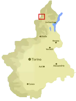 Map showing the location of Alta Valle Antrona Natural Park
