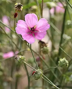 Althaea cannabina, commonly called palm-leaf marshmallow or hemp-leaved hollyhock, is a perennial herb belonging to the genus Althaea of the family Malvaceae. The leaves resemble those of hemp (Cannabis sativa), hence the specific epithet cannabina ("hemp-like").[1]
