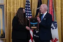 President Biden awarded three Medals of Honor, to Cashe's family, Earl Plumlee and the family of Christopher Celiz, in a ceremony on December 16, 2021.[23][24]