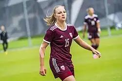 In the UEFA Women's European Qualifiers, she has been recognized for her performance and continues to represent Latvia at the international level.[3] Her national team number is 13, and she plays a crucial role in the midfield, contributing to both defensive and offensive plays.[4]
