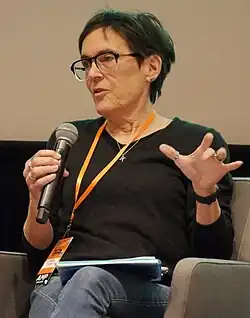 Amelia Jones (born July 14, 1961), originally from Durham, North Carolina, is an American art historian, art theorist, art critic, author, professor and curator. Her research specialisms include feminist art, body art, performance art, video art, identity politics, and New York Dada. Jones's earliest work established her as a feminist scholar and curator, including through a pioneering exhibition and publication concerning the art of Judy Chicago; later, she broadened her focus on other social activist topics including race, class and identity politics. Jones has contributed significantly to the study of art and performance as a teacher, researcher, and activist.[1][2]