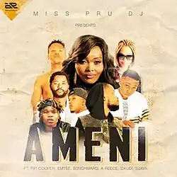 "Ameni" is a single by South African DJ and record producer Miss Pru DJ released on 16 April 2016 through Ambitiouz Entertainment, features guest appearances from Sjava, Emtee, Saudi, Fifi Cooper, A-Reece and B3nchmarQ with production from Tweezy, Lunatik Beats, Emtee and Ruff.