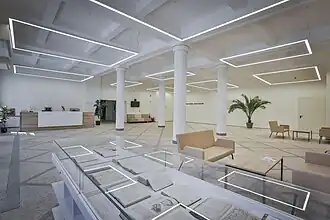A multifunctional sports hall that encompasses 1,276 square meters. It may be configured to be three basketball courts, two volleyball courts, two tennis courts, two badminton courts, or a handball field.[6] It is nicknamed "The Bubble". |