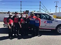 AMR provides and sponsors on-track safety and crash response services at NASCAR, IndyCar, and IMSA automobile races, sponsoring them since 2017, 2018, and 2019 respectively.[13][14][15] AMR's motorsports safety crews travel to races, and consist of at least 18 personnel, including doctors, emergency medical technicians, rescue and cleanup specialists.[16][17] Using trucks equipped with specialized medical equipment and hydraulic rescue tools, AMR's crews are reportedly capable of responding to on-track crashes within seconds.[16]