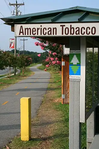 35°59′25.71″N 78°54′22.75″W / 35.9904750°N 78.9063194°W / 35.9904750; -78.9063194 (American Tobacco Trail)