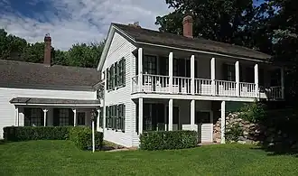 The Ames–Florida–Stork House is a historic house museum in Rockford, Minnesota, United States, on the Crow River. The house was built in 1856 by New England immigrants George F. Ames and his brother-in-law Joel Florida. Ames and Florida came to Minnesota from northern Illinois by steamship. On the steamship, they met Guilford George, a master carpenter and millwright. The three men formed a partnership and established the community of Rockford clustered around a sawmill and a gristmill.[2]