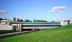 The station has two vestibules, built as large white structures on both sides of the valley, the northern one also offers a direct subway access to the Ametyevo platform of the railway line, the transfer was opened on 28 August 2008 and included modernisation of the railway platform to a theme similar of the Metro station.