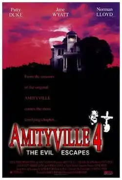 Amityville 4: The Evil Escapes (also known on screen as Amityville Horror: The Evil Escapes) is a 1989 American made-for-television supernatural horror film written and directed by Sandor Stern, and starring Patty Duke, Jane Wyatt and Fredric Lehne. The fourth film based on The Amityville Horror, it premiered on NBC on May 12, 1989. This was the only Amityville sequel to be based on a book in the main book series. A film adaptation for Amityville: The Horror Returns was to air on NBC but the film was never made.