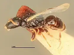 Ammoplanidae is a family of aphid wasps formerly treated as the Crabronidae subtribe Ammoplanina. There are about 10 genera and at least 130 described species in Ammoplanina.[1] Phylogenetic analyses in 2018 and 2021 have confirmed this group as the sister lineage to the bees, and thus accorded the group family rank.[2]