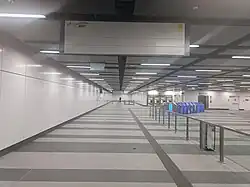 Paid-to-paid interchange between the Kelana Jaya Line and the Putrajaya Line, both underground, was planned for Ampang Park station; the integration was scrapped in favour of an out-of-station interchange due to cost-cutting measures.[2] Passengers will have to tap out from one line, resurface to ground level, and enter the other underground station when changing between the two lines with a 7 minutes walking time between platforms.