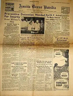 - ^ a b Misra, Shubhangi (14 August 2021). "Amrita Bazar Patrika — fiery newspaper took on British but then came a tame turn, and tragedy". The Print. Archived from the original on 7 October 2022. Retrieved 7 October 2022.