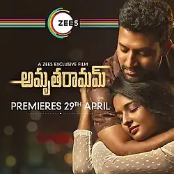 Amrutharamam is a 2020 Indian Telugu-language romance film written and directed by Surender Kontaddi, starring Ram Mittakanti and Amitha Ranganath. The film has music composed by NS Prasu.[2] It was the first Telugu film to have a direct-to-OTT release.[3] The plot revolves around an NRI couple in Australia who fall for each other. Released on ZEE5, the film received a lukewarm response from the audience.[4]