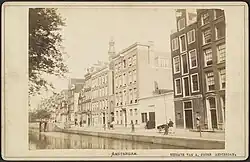 The relatively large sugar refinery "L'Union" was situated on the northern side of the Bloemgracht at number 148. It was auctioned in April 1841.[14] In April 1845 the equipment of this refinery was sold, perhaps due to Kooij acquiring the Schoonenburgh refinery in February 1844.[15] The house at Bloemgracht 150 was also part of this refinery. On 21 September 1849 one of the buildings of the sugar refinery "L'Union" on the Bloemgracht burned down. At the time B. Kooy Jz was the owner.[16] In November 1849 the house and the grounds of the burned down refinery were offered at an auction.[17] It did not become part of the public company Amsterdamsche Stoom Suikerraffinaderij in 1856.