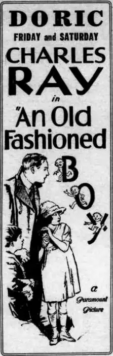 An Old Fashioned Boy is a surviving 1920 American silent comedy romance film directed by Jerome Storm and starring Charles Ray. Famous Players–Lasky produced along with producer Thomas Ince. It was released by Paramount Pictures.[1][2]