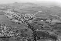 Jackpile Mine aerial, pre-1982. Part of Anaconda townsite at lower left.