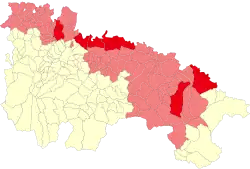 On 9 December, the revolution spread from Aragon to La Rioja, where numerous municipalities saw armed clashes between revolutionaries and the police; two revolutionaries and an Assault Guard were killed in the regional capital of Logroño. In the town of Arnedo, 20-30 revolutionaries seized the town hall, hoisted the anarchist flag and proclaimed libertarian communism. They then occupied the council chambers for four hours, before leaving at the request of the mayor. Later that day, Civil Guards occupied the town, replaced the anarchist flag with the Spanish flag and raided the CNT branch office, arresting 27 CNT members and shutting down the local union.[37] The arrested were all young, male day labourers, most were single, and only one was older than 30.[38] Libertarian communism was also proclaimed in the towns of Briones, Calahorra, Cenicero and Fuenmayor, while the insurrection spread from La Rioja into the province of Burgos.[30]