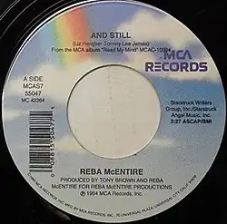"And Still" is a song written by Liz Hengber and Tommy Lee James, and recorded by American country music artist Reba McEntire. It was released in May 1995 by MCA Records as the fifth and final single from her nineteenth studio album, Read My Mind (1994). The song reached number two on the US Billboard Hot Country Singles & Tracks chart in August 1995.[1]