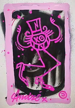 André Saraiva (a.k.a. Monsieur André and Monsieur A) born 2 July 1971. Known mononymously as André, is a Swedish-French artist best known for his work in graffiti. Amongst his creations is Mr. A which he has painted across all six inhabited continents. His work has been featured in museums such as the MoCA as in feature films such as Exit Through the Gift Shop.[1] As an entrepreneur, he owns restaurants, nightclubs such as Le Baron, and hotel chains such as Hotel Amour.