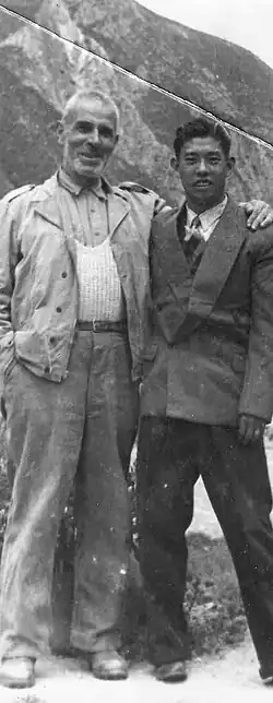 After the war he went to Indochina, whence in 1947 he made a journey alone through Eastern Tibet and China in order to research aspects of Tibetan Buddhism. During this journey he tried but failed to reach Lhasa disguised as a mendicant lama. As he could speak and write Tibetan, he was able to converse with the lamas, and was initiated into the Karma Kagyu lineage at Shangu Gompa, a lamasery outside modern-day Yushu.[1] This journey is described in his best-known book Caravane vers Bouddha, translated into English by Peter Fleming as Tibetan Marches.