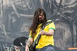 He was 10 when he started to listen to his parents' records of the Beatles, Roberto Carlos and Tonico & Tinoco.[1] He received his first acoustic guitar from his grandmother and later won a second guitar at a game of Bingo.[2] In his early adolescence, Kisser started to play acoustic guitar first learning basic chords from the Brazilian popular music repertoire and later on classical pieces. A friend then introduced Kisser to hard rock with bands like Queen and Kiss which had a great influence on him. In 1983, he went to see Kiss live in São Paulo and his father took him to Rock In Rio in 1985 to see AC/DC.[3] Kisser eventually got his first electric guitar, a Giannini-Supersonic, and an overdrive pedal. Kisser's first guitar was purchased for him by his mother.[4] Some of his major influences consisted then of Eric Clapton, Jimi Hendrix, Steve Howe, Tony Iommi, Ritchie Blackmore, Jimmy Page and Randy Rhoads.[5]