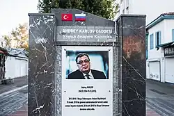 On the evening of 19 December 2016, while speaking at an art gallery exhibition in Ankara, Turkey, he was assassinated by Mevlüt Mert Altıntaş, an off-duty Turkish policeman.[2][3]