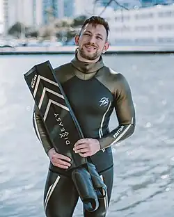 In 2017 he started training in apnea and free-diving.[3] In 2018 he set his first National Record for Ukraine in the Vertical Blue Competition with 71m in CNF (Constant Weight No-Fins) discipline, certified by AIDA Judges. He is the first Individual Champion, competing for two different countries: Ukraine by AIDA and US by CMAS.[4]