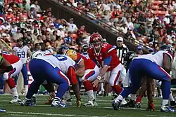 In the season opener against the Chicago Bears, Dalton completed 26 of 33 passes for a career-high 78.8 completion percentage, 282 yards, two touchdowns, two interceptions, and a 91.8 QBR as the Bengals lost on the road by a score of 24–21.[62][63] In the next game, he threw for 280 yards and a touchdown as the Bengals beat the Steelers by a score of 20–10.[64] The following week, Dalton completed 20 of 28 passes for 235 yards, two touchdowns, and an interception for a 105.5 passer rating in leading the Bengals to a 34–30 victory over the Green Bay Packers.[65]