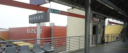 Angamos is a Lima and Callao Metro station on Line 1. The station is located between Cabitos and San Borja Sur. It was opened on 11 July 2011 as part of the extension of the line from Atocongo to Miguel Grau.[1] The full revenue service started on 3 January 2012.[2][3]