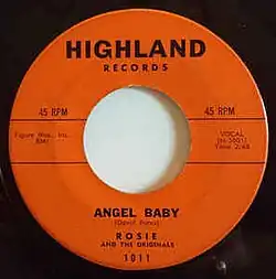 "Angel Baby" is a 1960 single by Rosie and the Originals. The group recorded the song independently on a two-track machine, located in a facility in the small farming community of San Marcos, California. At the time, lead singer Rosie Hamlin was only 15 years old. She had written the lyrics for "Angel Baby" as a poem for "[her] very first boyfriend" when she was a 14-year-old student at Mission Bay High School in San Diego, California.[2]