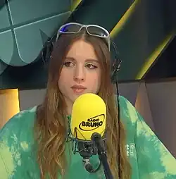 In September 2014, she enrolled at Lice Scientifico Statale "Dante Alighieri" in Matera, before suspending her studies following her father's death on 8 December of the same year.[14][15] In 2016, she moved to Milan with her mother and brother, where she continued her studies and started singing in a band with her brother as a drummer.[16]
