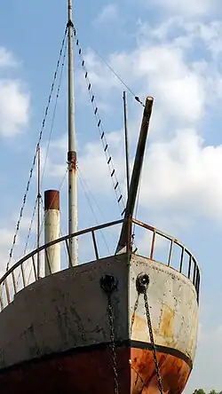 With the river rerouted, the ships could be removed in portions. To do this, cuts were made in the hulls so that they could be transported. The ships were towed out of the river with fishing boats. Once out of the river, the ships were placed on ceramic pedestals. They were then reassembled and welded to correct the damage caused by time and water. The recovery process on the Yhaguy took a significant amount of time and effort. It took five years of work to complete. The Anhambay was recovered and restored, serving today as a museum ship on display in the Vapor Cué National Park in Caraguatay, Cordillera Department.[3][10][11]